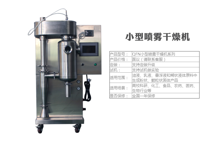 第二,在選購制藥專用小型噴霧干燥機的時候,必需要考慮到其是否會對生產物品形成污染等問題,一切會與物料以及熱風觸摸的地方都必需要運用不銹鋼制作,為了不對物品產生污染,所運用的不銹鋼還應當滿足藥品物料的酸堿度(PH值)要求。
