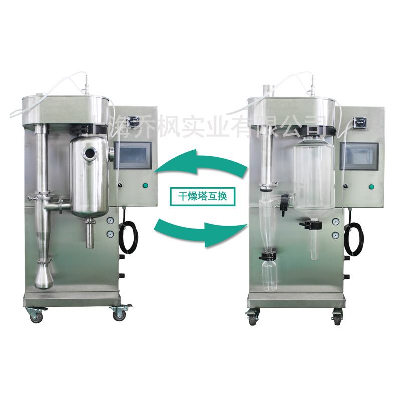 另配套全不銹鋼霧化室,旋風分離器,物料收集瓶,廢料收集瓶,可與玻璃套裝互換使用,整套設備實現直觀觀察和干燥系統不容易壞的目的。