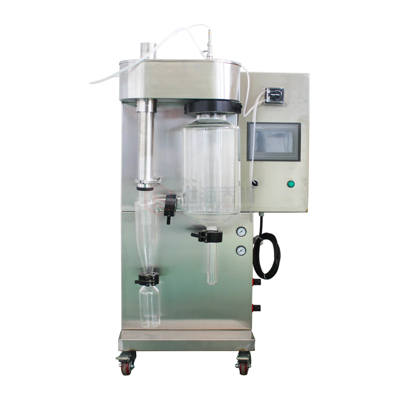 小型 實驗型 微型噴霧干燥機(噴霧干燥儀/噴霧干燥機)及其主要適用于高校、研究所和食品醫藥化工企業實驗室生產微量顆粒粉末,對所有溶液如乳濁液、懸浮液具有廣譜適用性, 適用于對熱敏感性物的干燥如生物制品、生物農藥、酶制劑等,因所噴出的物料只是在噴成霧狀大小顆粒時才受到高溫,故只是瞬間受熱,能保持這些活性材料在干燥后仍維持其活性成份不受破壞。