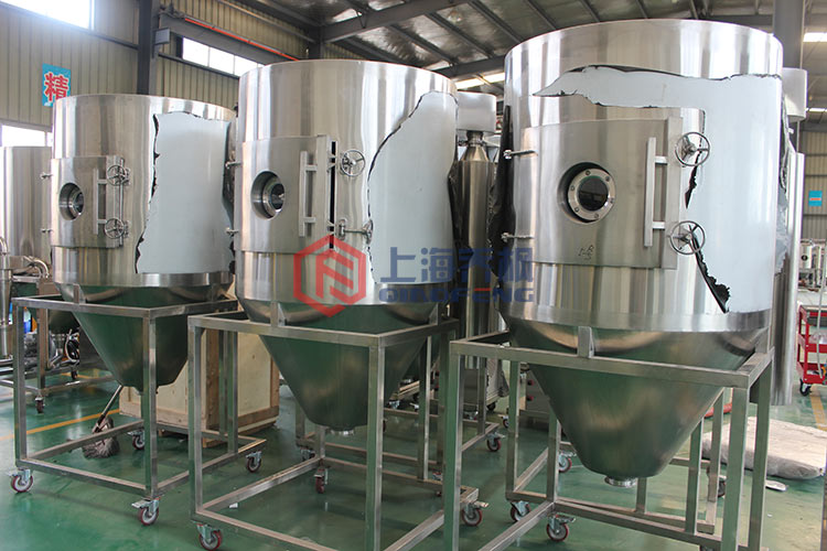 噴霧裝置是離心式噴霧干燥技術(shù)原理在特定物料干燥中的應(yīng)用,也是利用高速離心式霧化器使物料分散成細(xì),與熱空氣充分接觸,完成瞬間干燥,形成粉狀成品的干燥裝置。該干燥設(shè)備是專門用來解決中藥浸膏和植物提取液的噴霧干燥機,它有效地解決了原LPG高速噴霧干燥機在中藥浸膏干燥中出現(xiàn)的粘壁、焦化、收粉率低、產(chǎn)量低等問題。