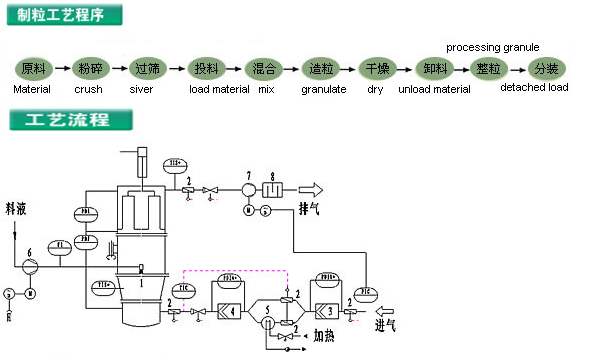 沸騰制粒干燥機(jī)利用換熱器加熱的空氣形成熱空氣,通過閥板將熱空氣分配到主機(jī)中。濕物料從進(jìn)料機(jī)進(jìn)入干燥機(jī)。由于氣壓的作用,物料在干燥器中形成沸騰狀態(tài),與熱風(fēng)廣泛接觸,在較短的時(shí)間內(nèi)完成物料的干燥。沸騰制粒干燥機(jī)是一種干燥設(shè)備,又稱流化床。一般由加熱器、沸騰床主機(jī)、旋風(fēng)分離器、袋式除塵器、引風(fēng)機(jī)、操作臺(tái)等組成。根據(jù)物料性質(zhì)的不同,可根據(jù)需要選用旋風(fēng)分離器或袋式除塵器。沸騰干燥機(jī)提高了流動(dòng)性,減少了粉末造粒飛塵;通過粉末造粒提高了溶解性;在一臺(tái)機(jī)器中混合、造粒、干燥完成一步造粒;使用抗靜電濾布,設(shè)備安全運(yùn)行;設(shè)置泄壓孔,一旦發(fā)生爆炸,設(shè)備人員不受傷害;設(shè)備無死角,裝卸料輕便快捷,沖洗干燥。凈,符合GMP規(guī)范。