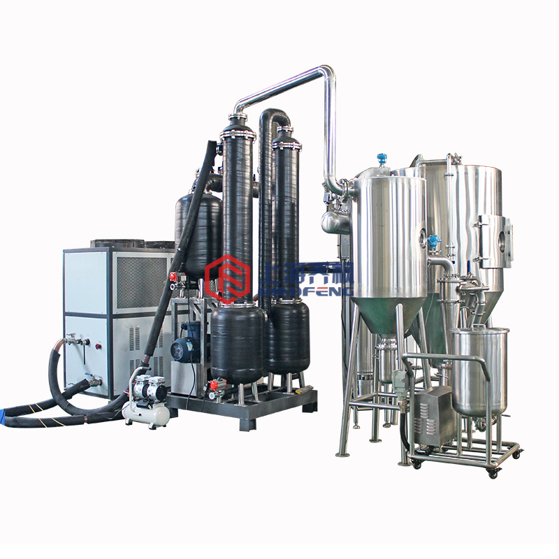 設(shè)備主要由:送料系統(tǒng)、加熱系統(tǒng)、霧化系統(tǒng)、噴霧干燥系統(tǒng)、惰性氣體循環(huán)系統(tǒng)、產(chǎn)品回收系統(tǒng)、冷凝系統(tǒng)組成。